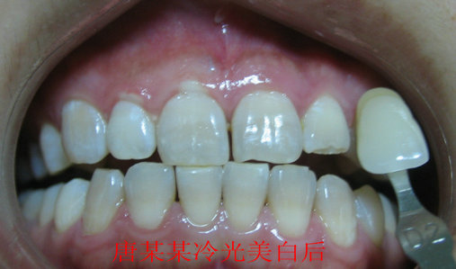 冷光美白是一项正流行于欧美的最新牙齿美白技术,它不仅可以去除牙齿表面的色素沉积,同时可进入牙齿深层达到脱色的效果。根据临床实验表明,使用冷光牙齿美白技术,其效果可提高5-14个vita色阶,不仅优于同类产品,更超过家用牙套美白效果30%以上。无副作用,美白效果可维持两年以上。