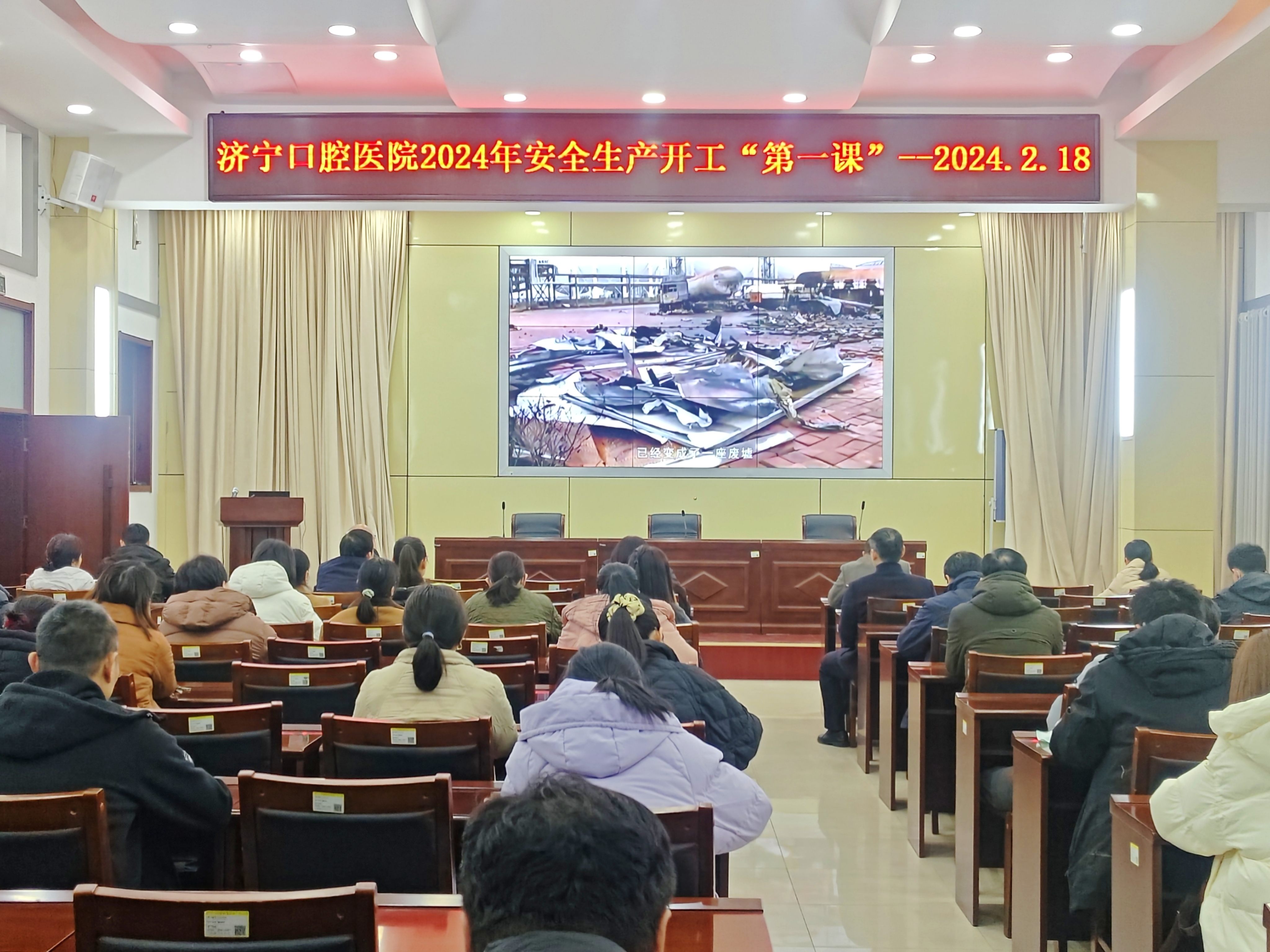 为贯彻落习近平总书记关于安全生产重要讲话精神,强化全院职工安全生产意识,全面做好春节后安全生产工作,2月18日,济宁口腔医院召开了2024年春节后安全生产开工“第一课”培训会,医院领导班子成员、各科室主任和护士长及医院行政后勤工作人员参加了会议。